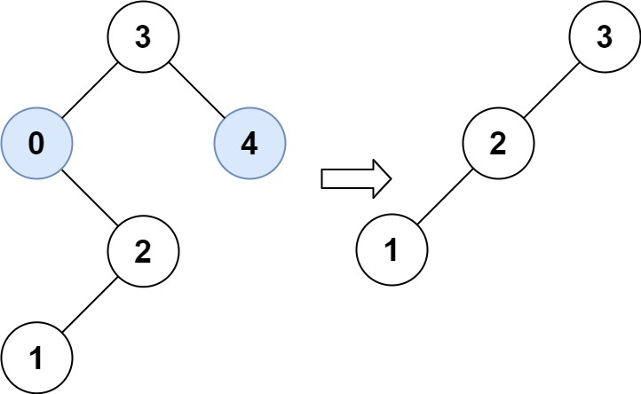 TreeNodecurr= root; //deal with root's left sub-tree, and deal with the value smaller than low. while(curr != null){ while(curr.left != null && curr.left.val < low){ curr.left = curr.left.right; } curr = curr.left; } //go back to root; curr = root;
