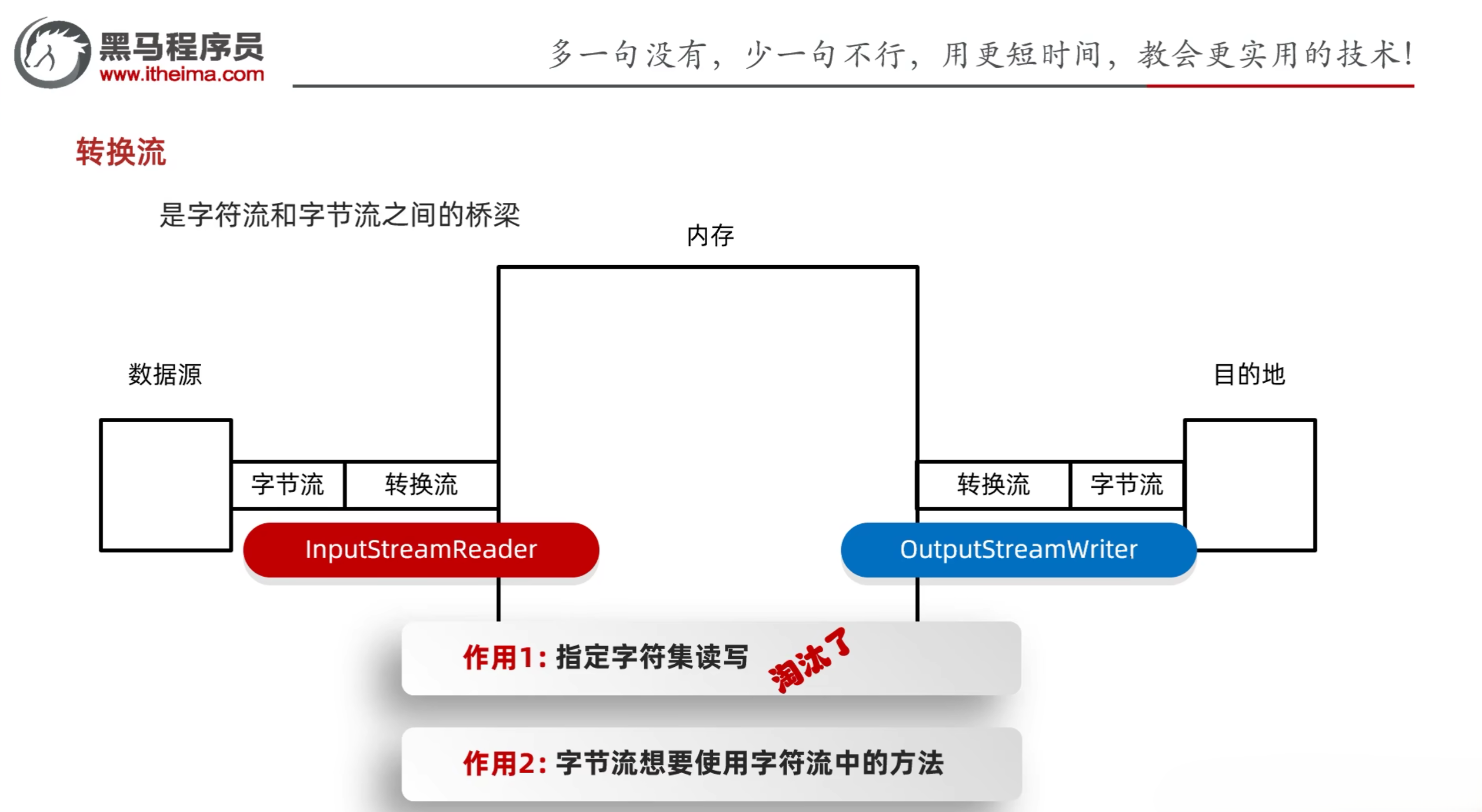 - 字节流:以字节为单位读写数据,适合处理所有类型的文件(图片、音频、视频等)