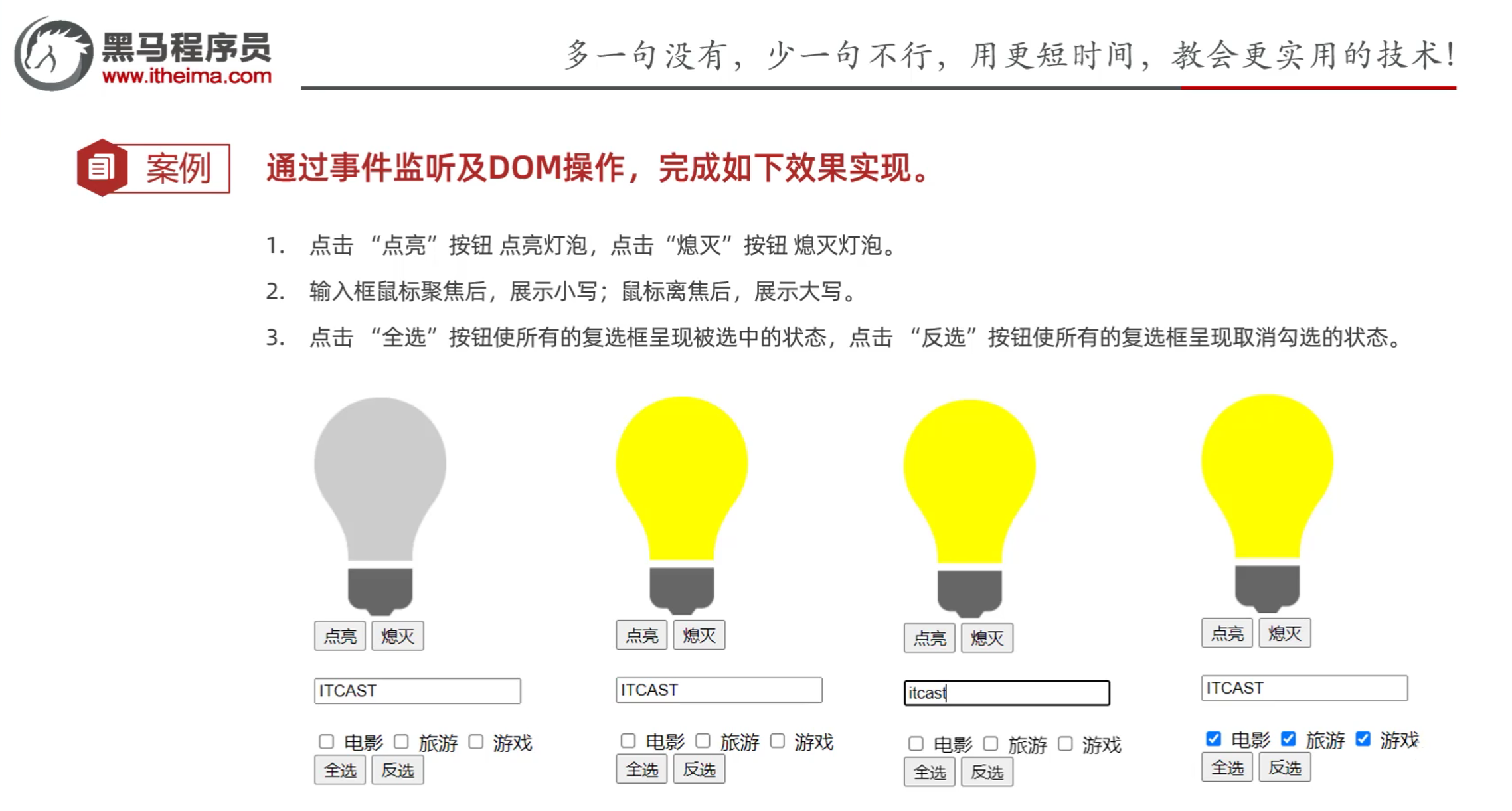 - 外部JS文件中只包含JS代码,不包含<script>标签