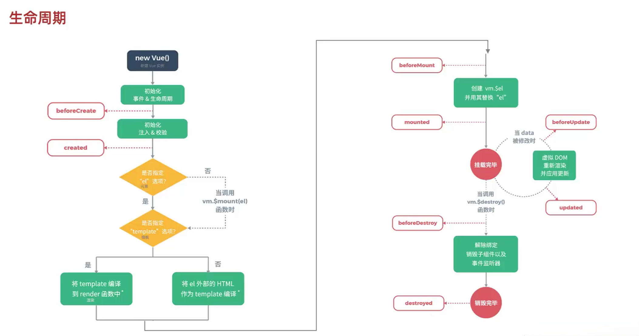 - mounted:挂载完成,Vue初始化成功,HTML页面渲染成功。(发送请求到服务端,加载数据)