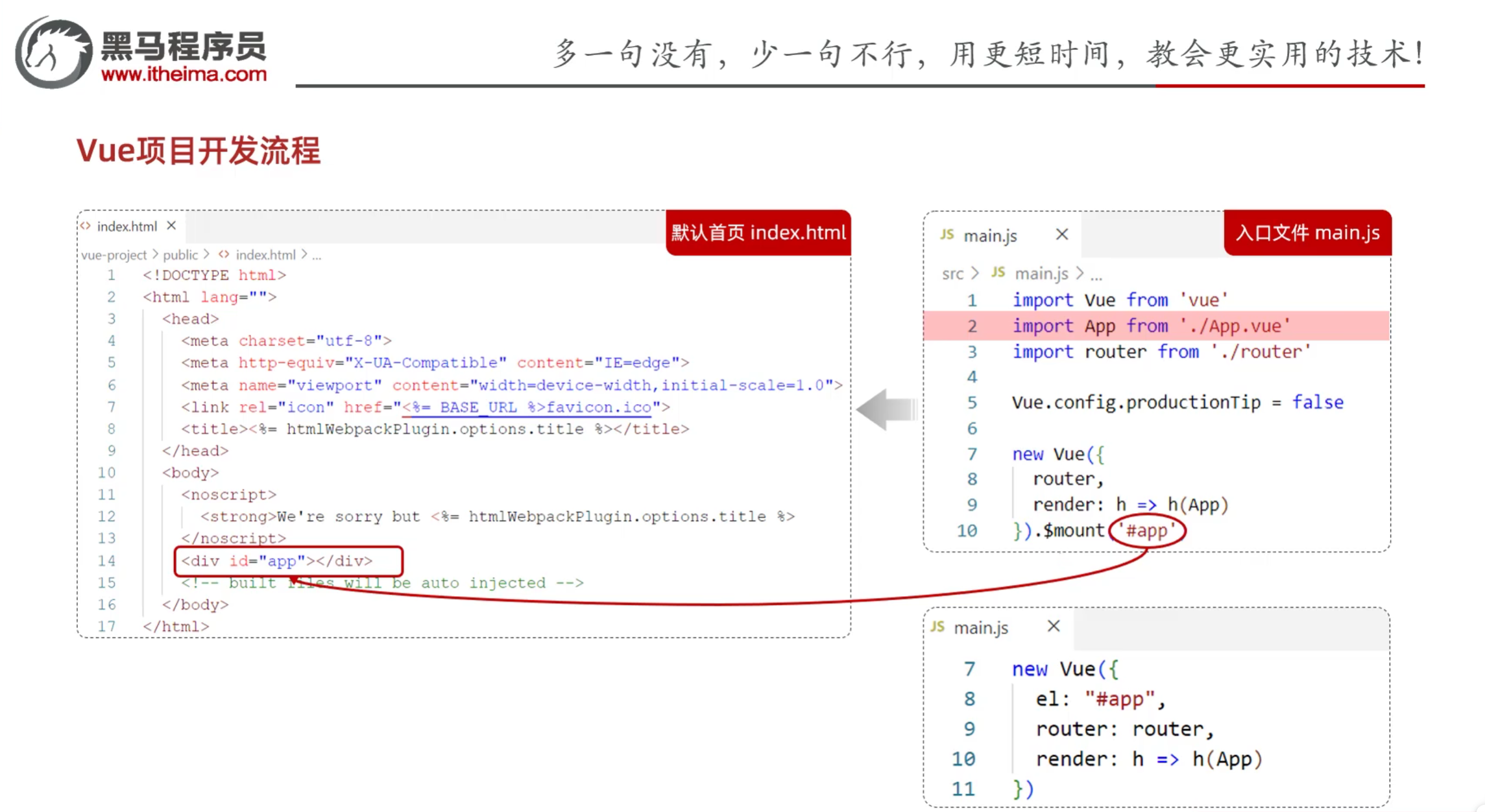 - <router-view>:动态视图组件,用来渲染展示与路由对应的组件