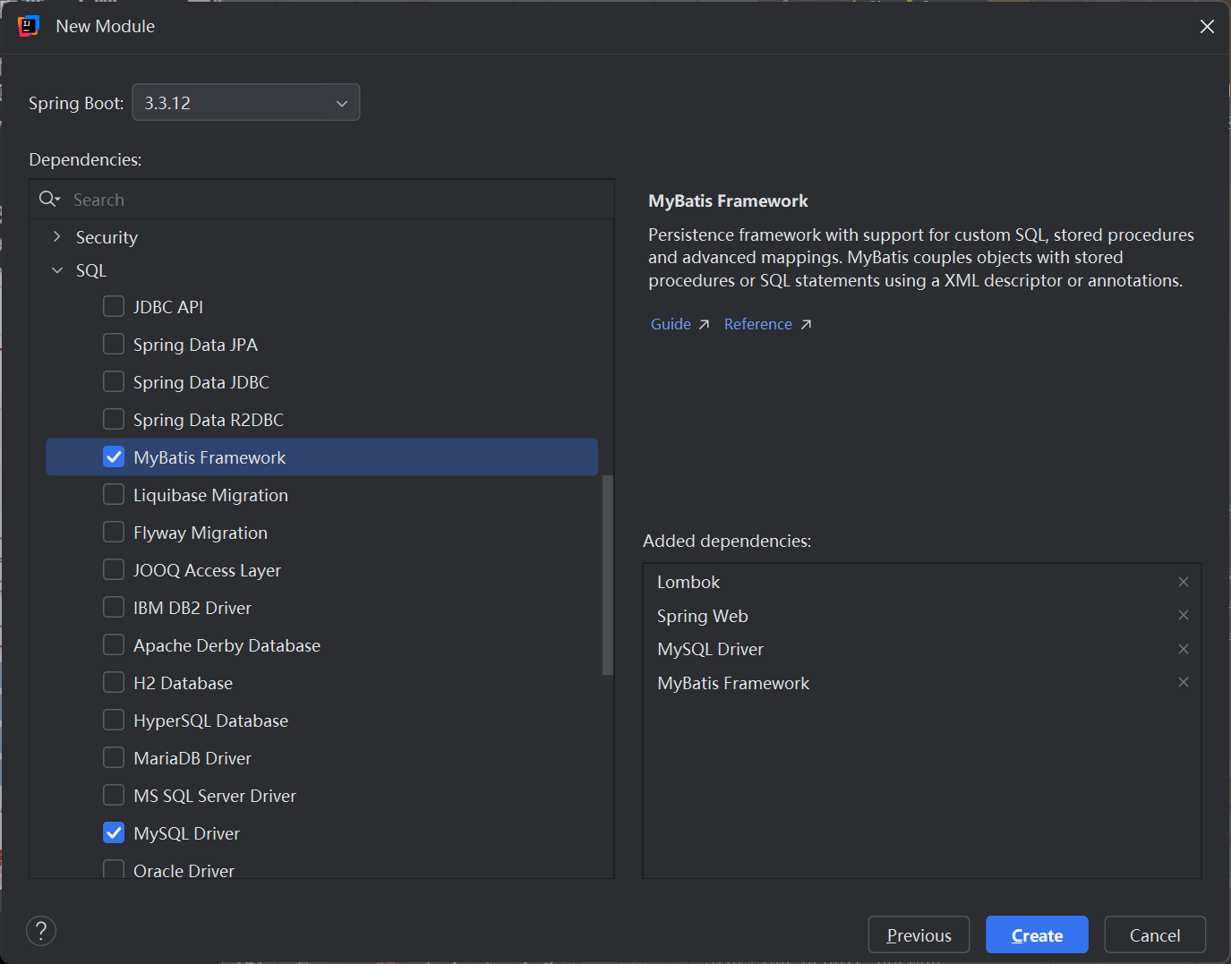- 创建springboot工程,引入对应的起步依赖(web、mybatis、mysql驱动、lombok)