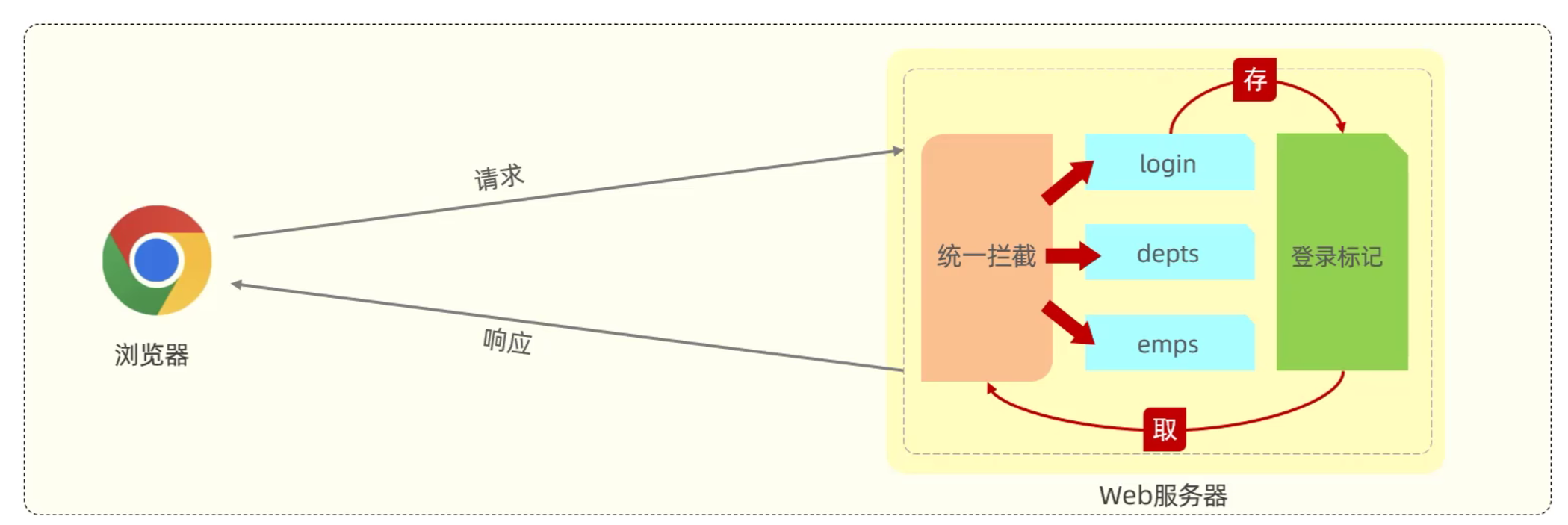 - 在登录系统中,登录校验Interceptor用于拦截所有请求,判断用户是否已登录