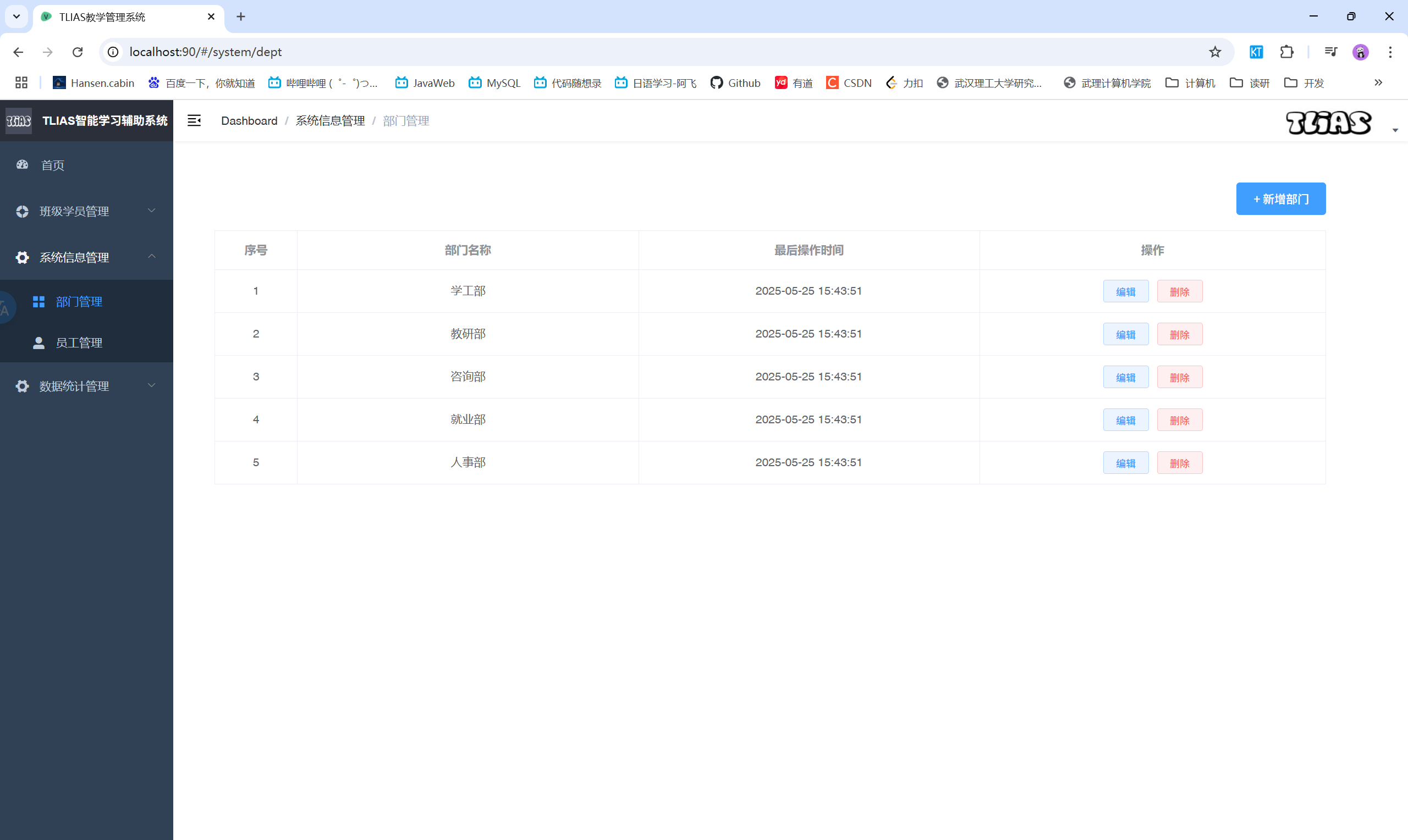 - 完成tlias智能学习辅助系统中的部门管理和员工管理功能