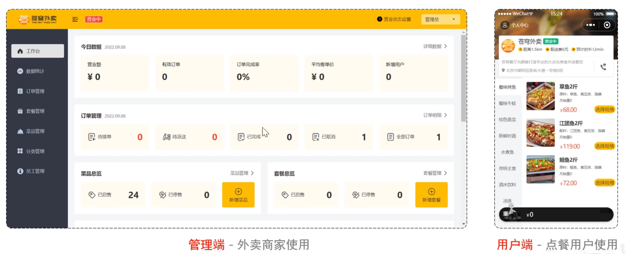 - 产品原型:展示了苍穹外卖的产品原型,一般由产品经理设计