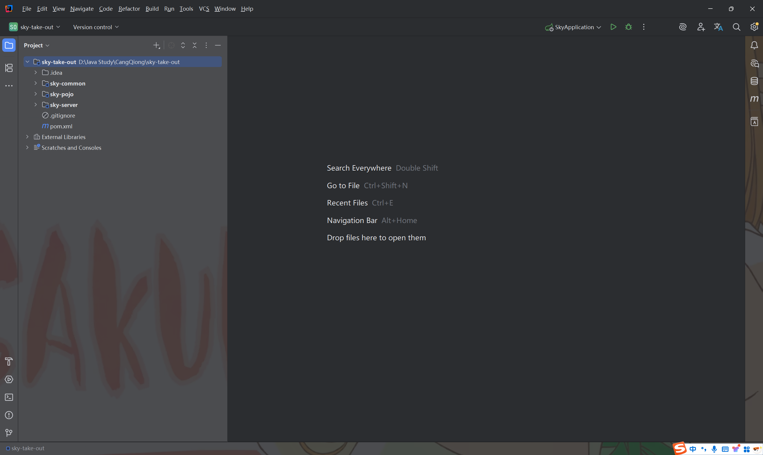 - sky-pojo:子模块,存放实体类、V0、DTO等