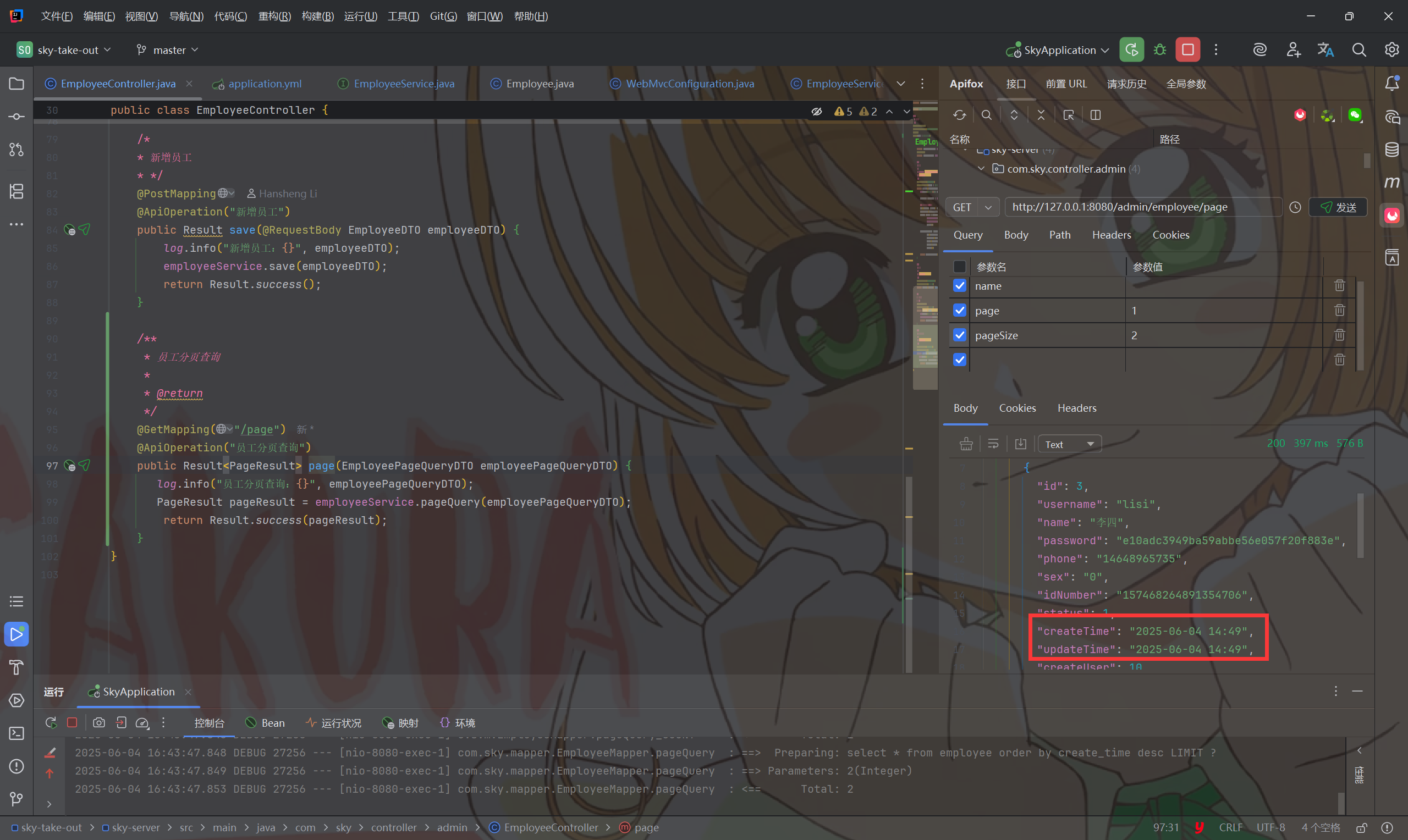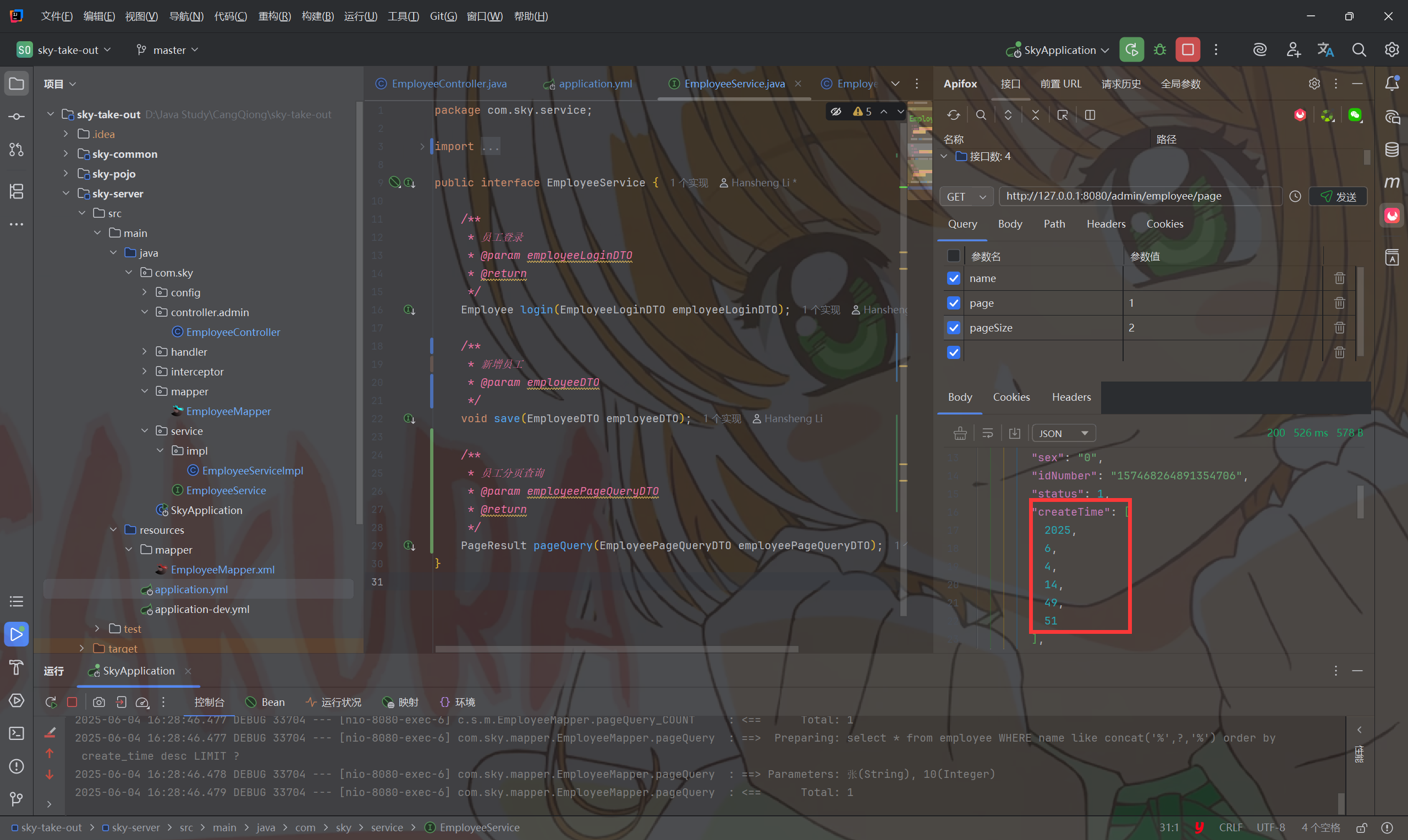 1 | <select id="pageQuery" resultType="com.sky.entity.Employee"> |