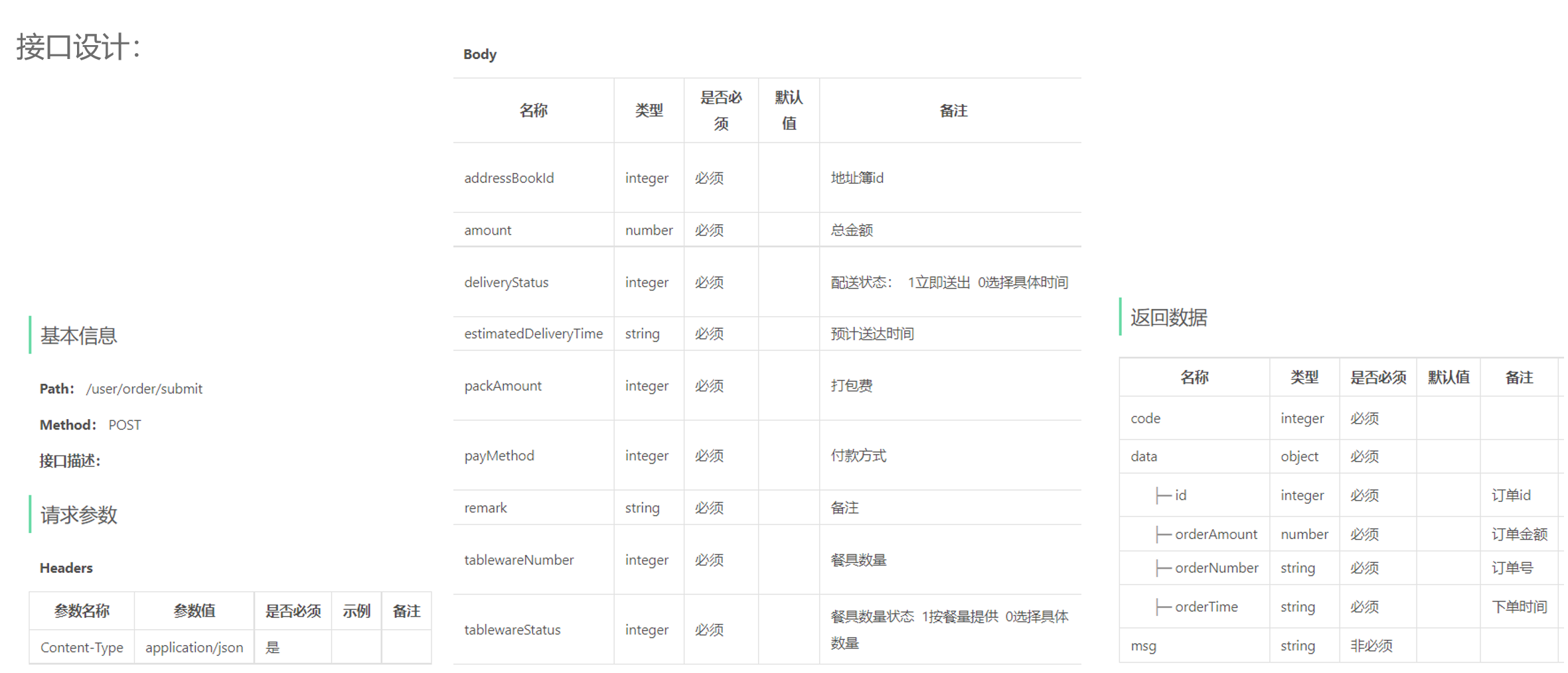 - 用户下单后会产生订单相关数据,订单数据需要能够体现如下信息: