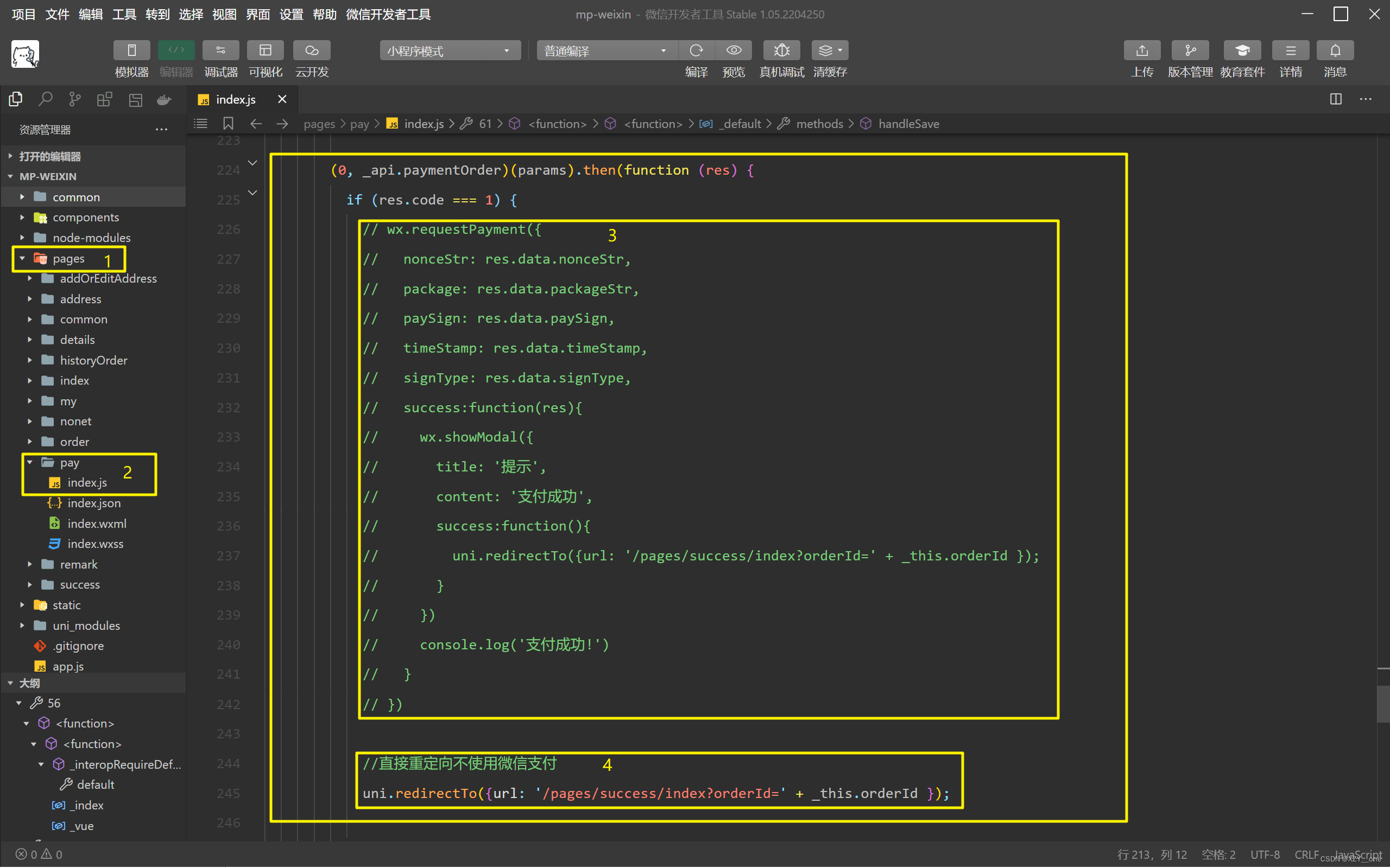 第一步:打开小程序端按照图片中的标注修改注释代码