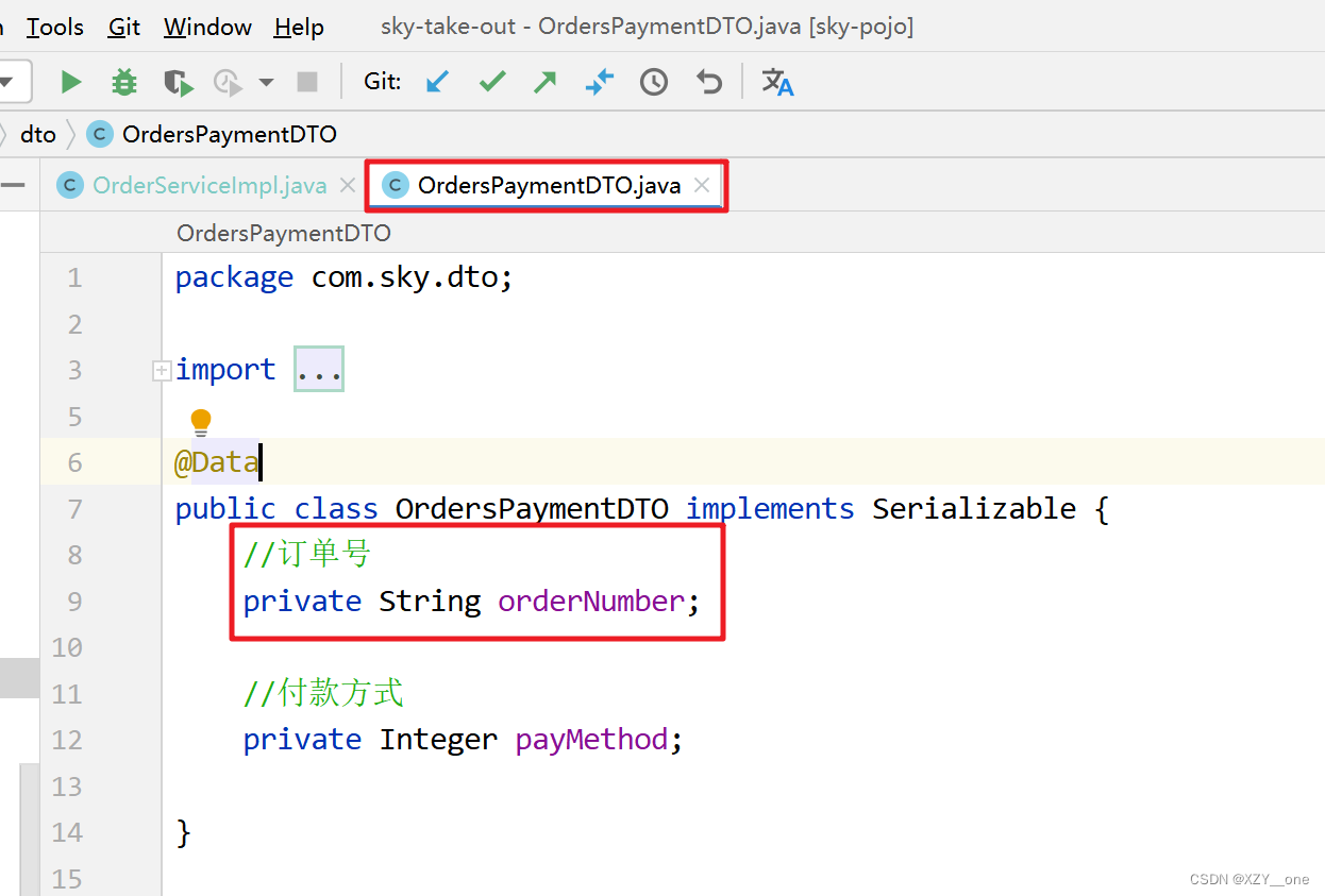 注意这个payment方法的参数OrdersPaymentDTO中有订单号orderNumber,这个非常重要
