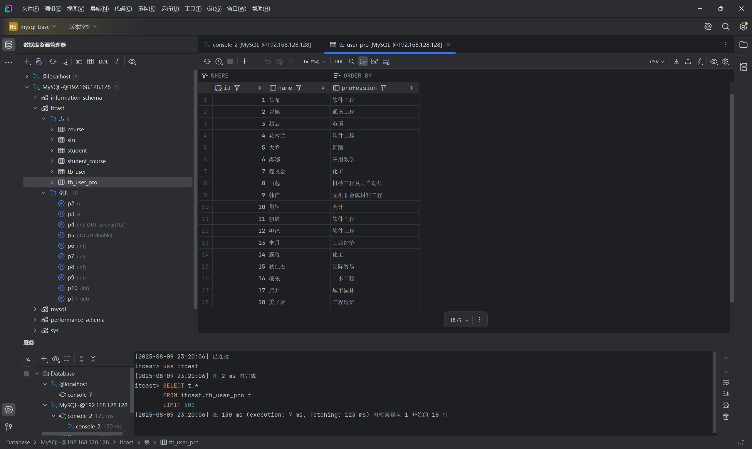 - information_schema:提供了访问数据库元数据的各种表和视图,包含数据库、表、字段类型及访问权限等。