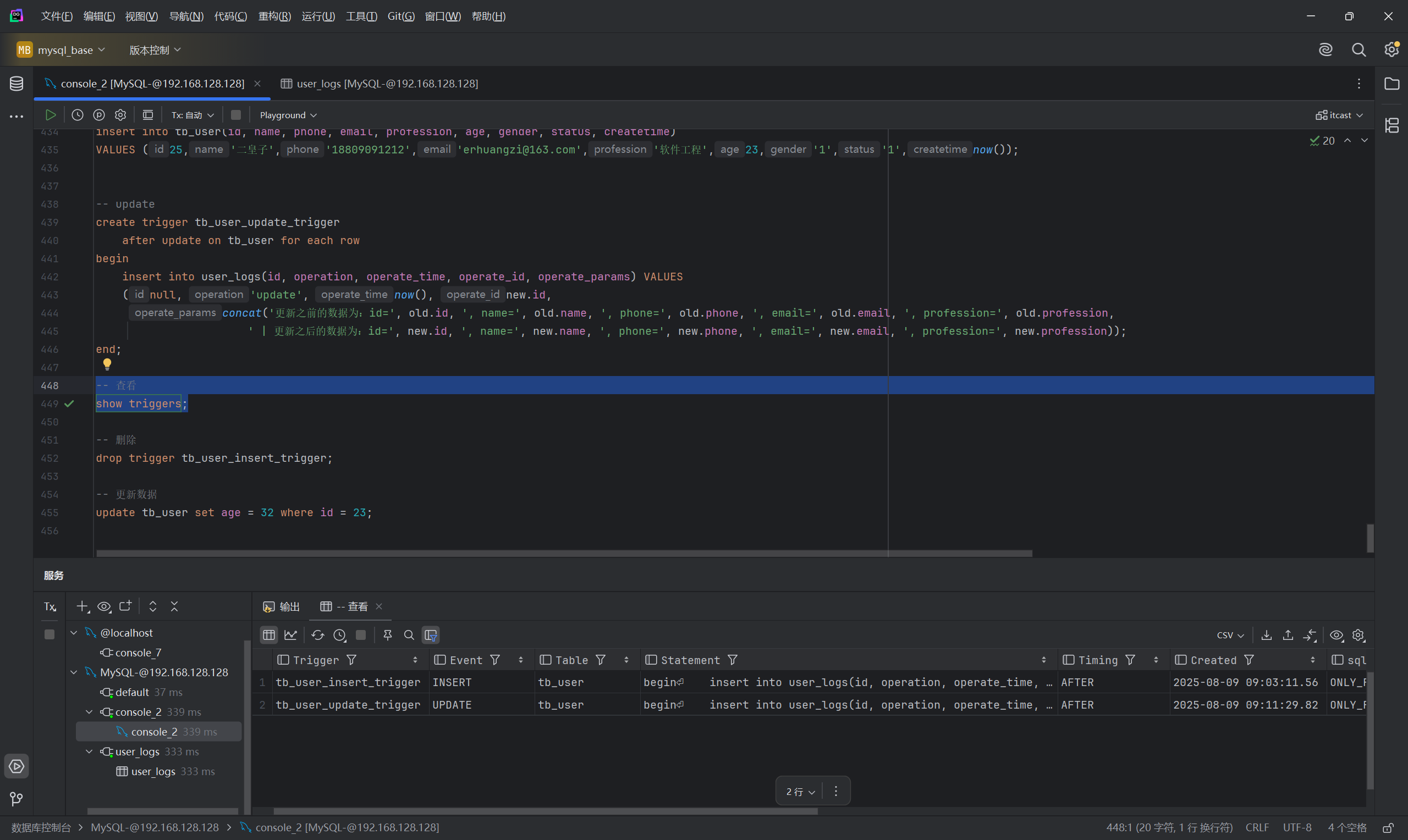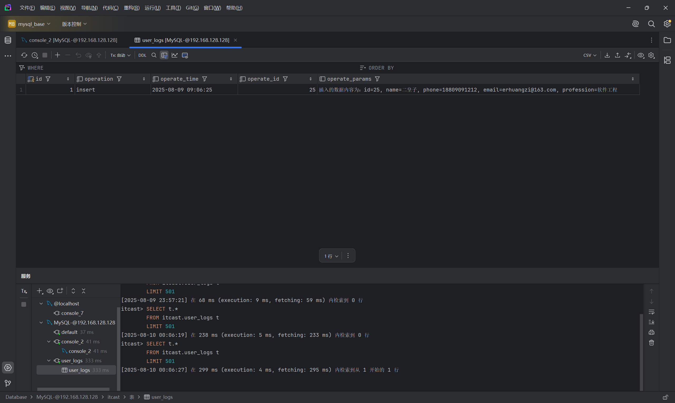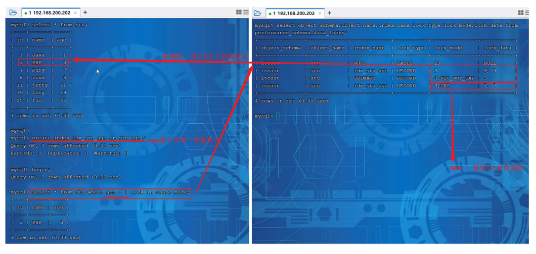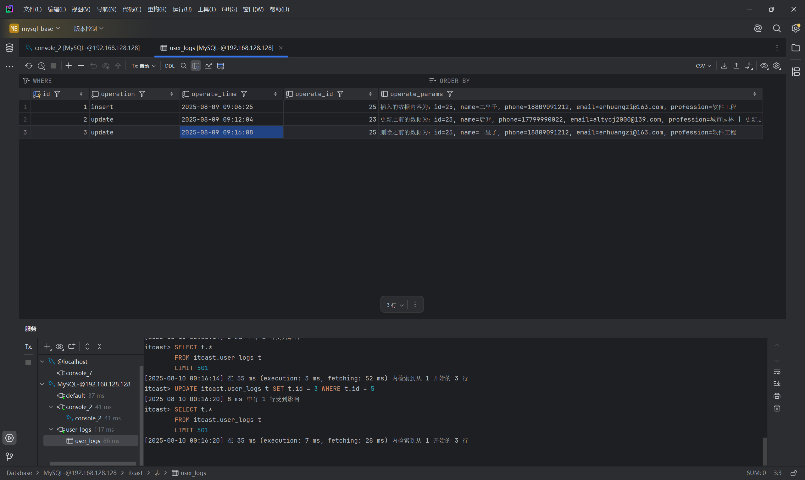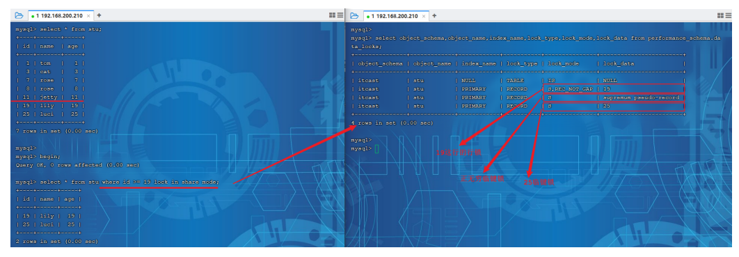 当前读:读取的是记录的最新版本,读取时还要保证其他并发事务不能修改当前记录,会对读取的记录进行加锁。对于我们日常的操作,如:select … lock in share mode(共享锁),select … for update、update、insert、delete(排他锁)都是一种当前读。