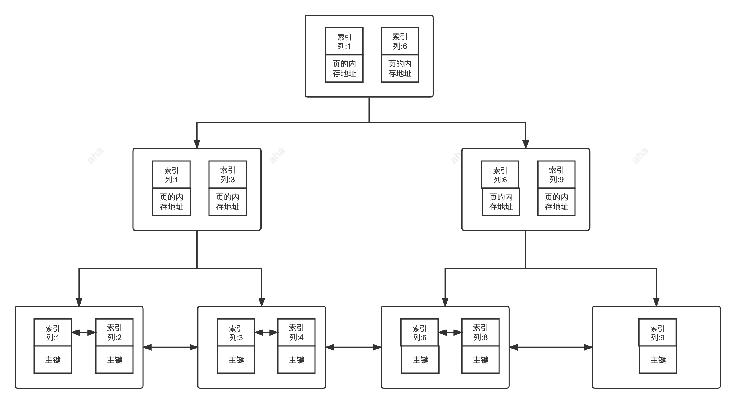 B+树:是B树的一种变体,所有数据都存储在叶子节点中,非叶子节点只存储索引信息。